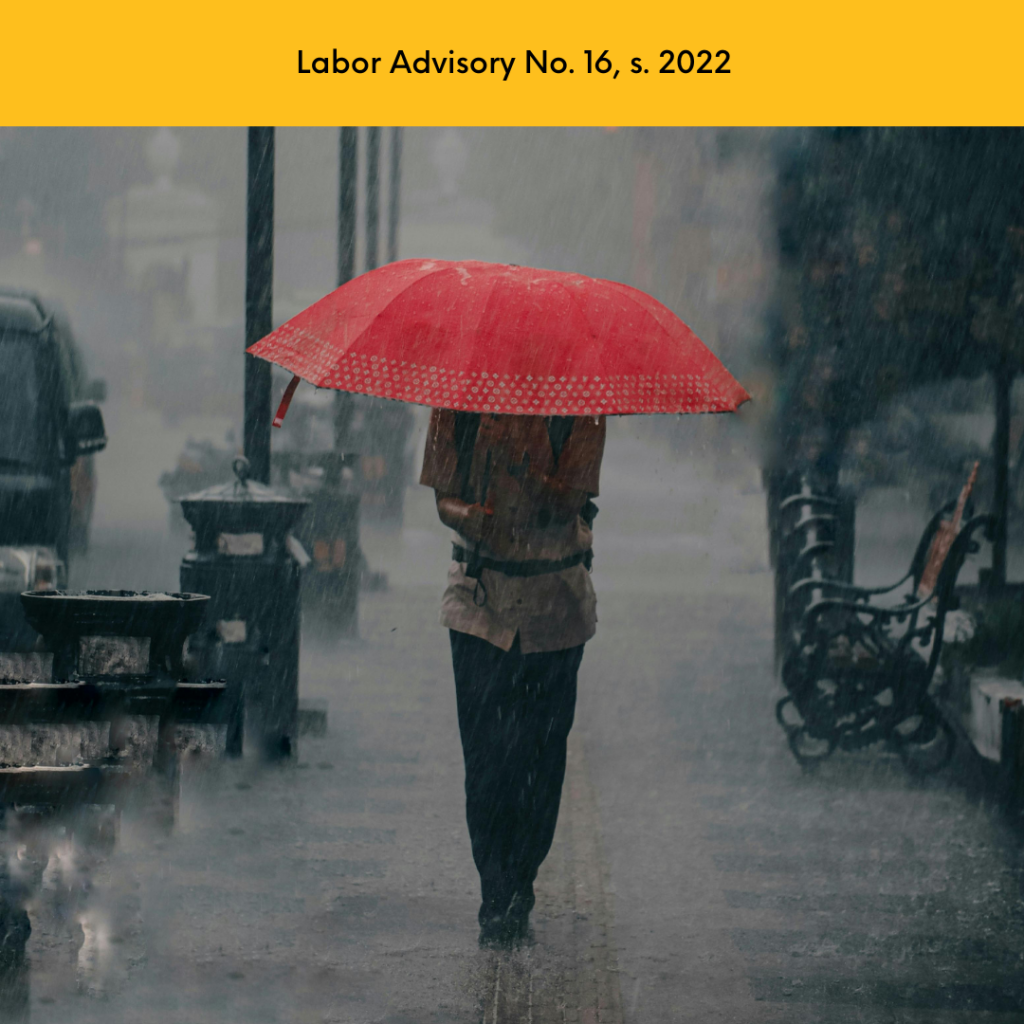 Labor Advisory No. 16, series of 2022, entitled Suspension of Work in the Private Sector by Reason of Weather Disturbances and Similar Occurrences tackles these issues.