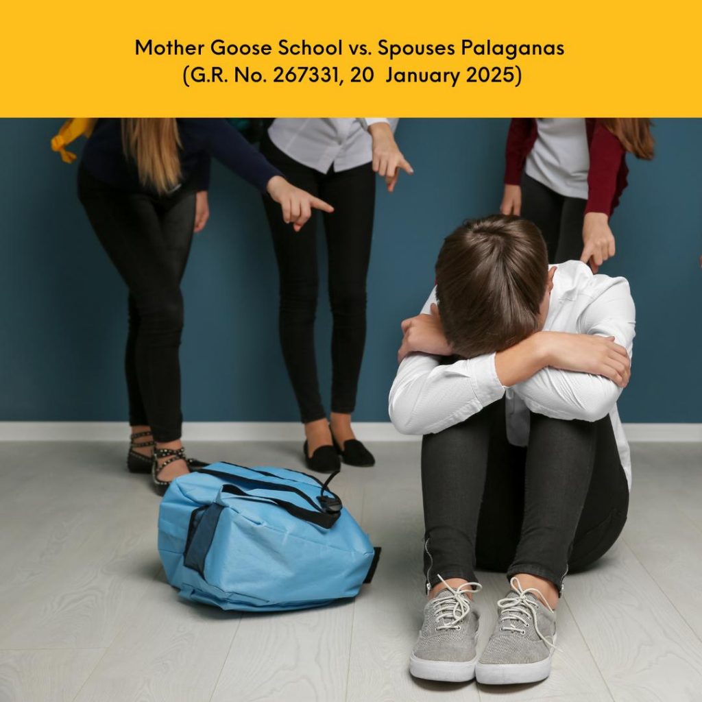 Bullying remains a persistent concern in schools, posing real threats to the safety and well-being of children. A recent decision of the Supreme Court underscores the legal responsibility of schools to safeguard their students and respond appropriately when bullying occurs (Mother Goose Special School System, Inc. vs. Spouses Palaganas (G.R. No. 267331, 20 January 2025) . It likewise highlights the shared duty of parents, guardians, and educators to maintain a secure and nurturing learning environment.