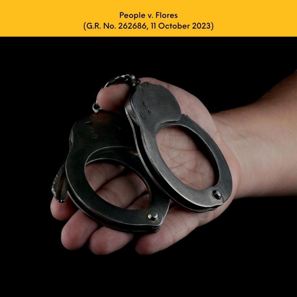 In People v. Flores (G.R. No. 262686, 11 October 2023), the Supreme Court reversed the conviction rendered by the lower courts and acquitted the accused of the crime of sale of dangerous drugs for failure of the prosecution to prove the elements of the offense beyond reasonable doubt.