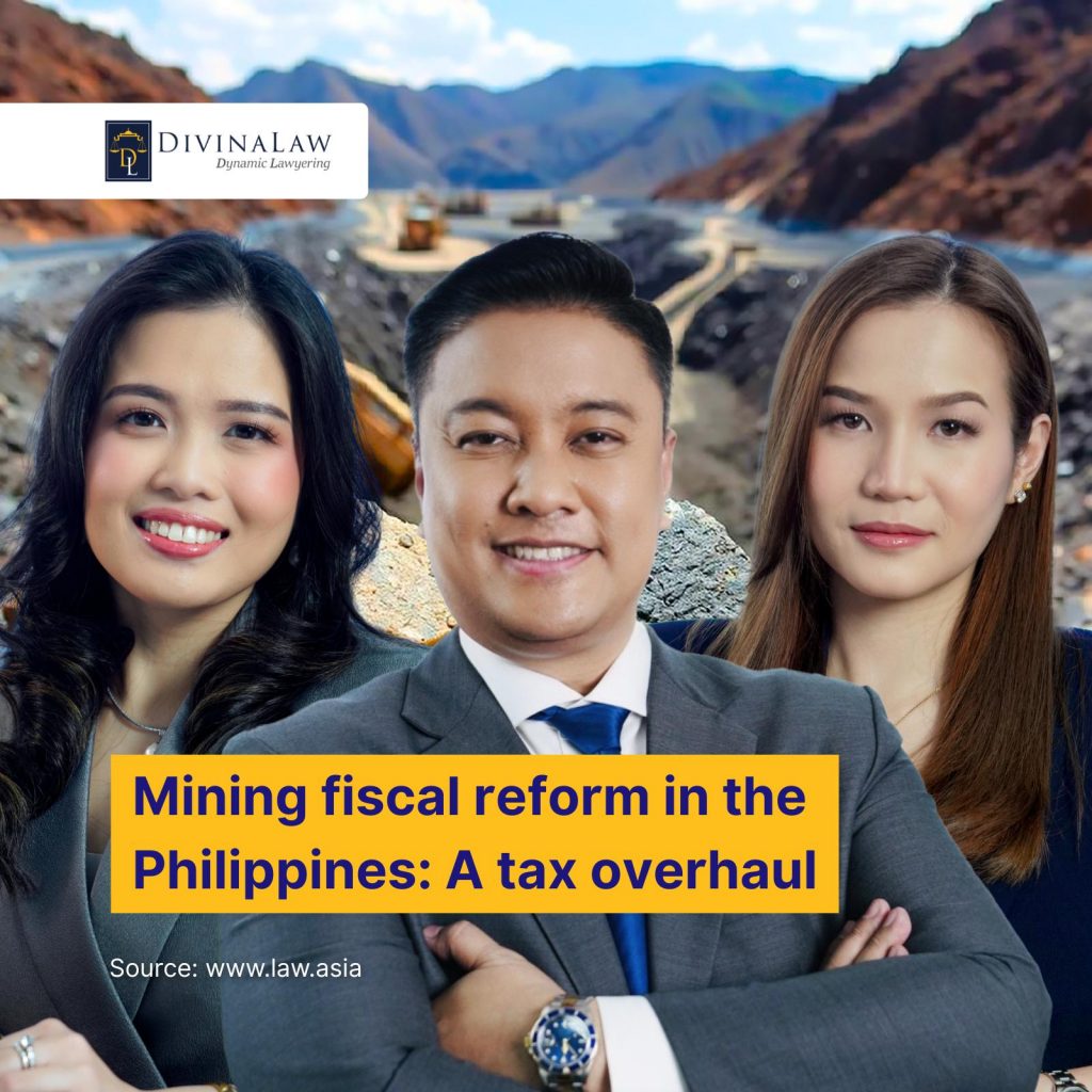 DivinaLaw Senior Partner Atty. Enrique Dela Cruz Jr., Partner Atty. Ciselie Marie Gamo-Sisayan, and Associate Atty. Kristina Mae Durana discuss how RA No. 12253 modernizes the mining fiscal regime for fairness and transparency.
